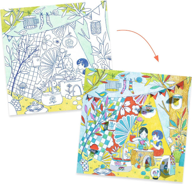Nina's Window Coloring Book, by Djeco, is a unique coloring book set that introduces an extra element of fun with its opening windows. While coloring, children discover the details hidden under the windows, which develops their curiosity and imagination.