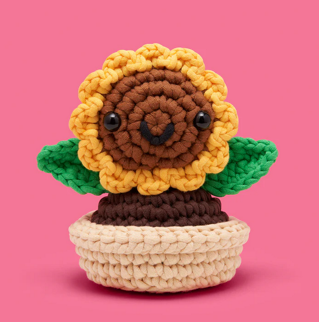And speaking of wooblin’, you might be surprised to learn that Ana, with those yellow-mazing petals and chic neutral pot, is actually great for newbies. But as a Beginner+ kit, it’s totally true that this awesome blossom is sun-tastic for Wooblers of any level—especially with the help of our Easy Peasy Yarn™ and step-by-step videos. So grab your hook and get ready to shine with this ray-mazing flower of a friend!