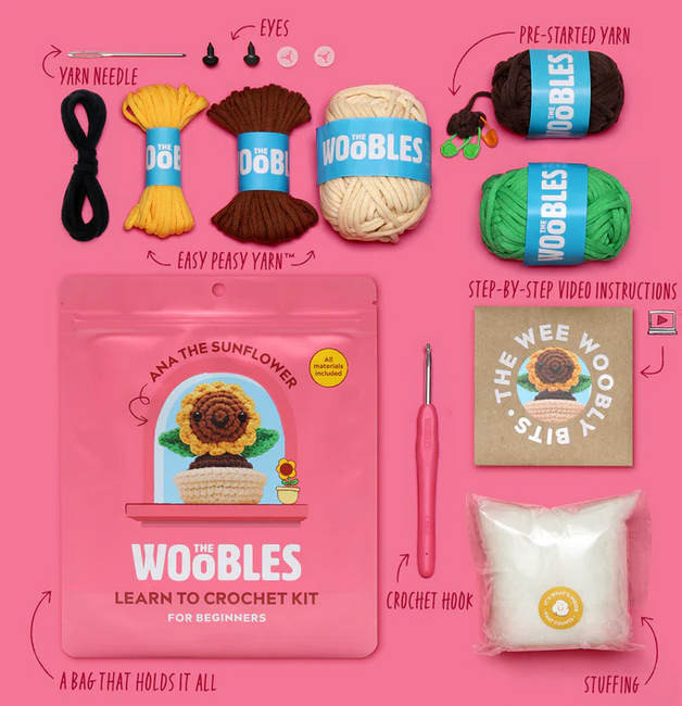 Over 1,000,000 people have learned crochet with The Woobles, and you can be next! Just follow the step-by-step video tutorials that come with each kit. The kits also come pre-started to get you over the first hump.