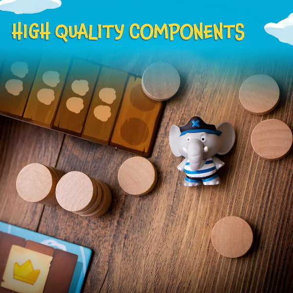 Get ready for a thrilling voyage with Stomp The Plank! This engaging game will have you searching Captain Giraffe's treasure chest with your cute elephant pirates, but be careful not to get caught, or you'll have to walk the plank. Flip over treasure cards to earn your loot, but remember, repeating a card flip could lead you to stomp the plank.