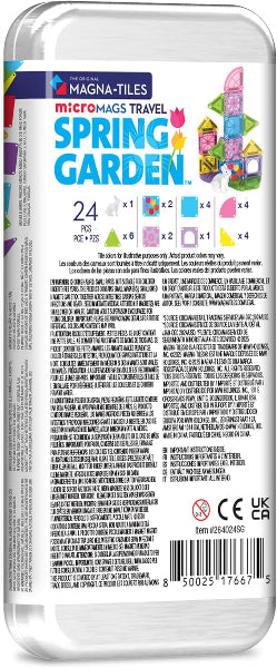 Bloom into creativity with the MAGNA-TILES microMAGS Spring Garden 24-Piece Travel Set! Featuring decorated floral tiles, pastel quarter-circle pieces, and an adorable bunny figure, this set inspires little builders to create bright, imaginative springtime worlds anywhere they go.