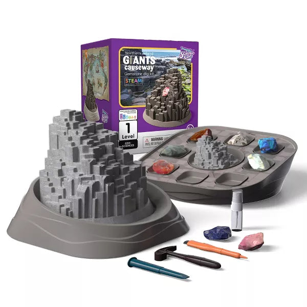 Take an immersive excavation experience to Northern Ireland Giants Causeway. The discovery kit allows kids to dig like a geologist and discover the dazzling gemstones hidden inside! This set also includes 8 gemstones, a hammer, a chisel, a spray bottle, a brush, and a map depicting famous geological locations across the world. Recreate the wonders of the landforms, dig for gems, and let your children be immersed in the experience.