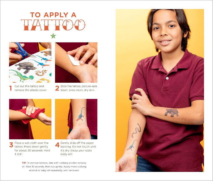 Kids can display their love of slithering snakes and remarkable reptiles with 50 fun and educational Tattoos That Teach, featuring realistic art and fascinating facts about the creatures.