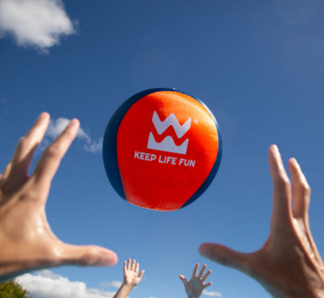 Big time fun! When a jumbo beach ball is around, you know it’s a party. Our extra large beach ball is back. Now with a lighter skin and faster drying material. The deluxe inflatable Waboba beach ball features a durable polyester cover for long-lasting play. Fun for beach and pool games!