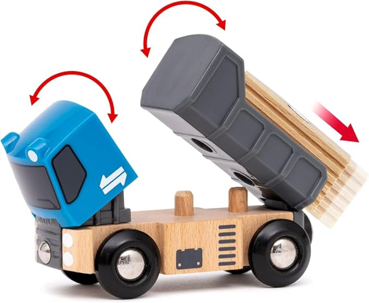 Gear up for your first BRIO World adventure with the 36028 Starter Lift & Load Set. This 14-piece railway set features classic BRIO play with focus on lifting and loading cargo between trains, cranes and trucks. Place the wooden cargo load on the back of the orange cargo train and take a lap around the iconic BRIO wooden tracks. Then use the magnet on the low level crane to pick up the cargo, swing it around to be loaded onto the blue truck and off you go.